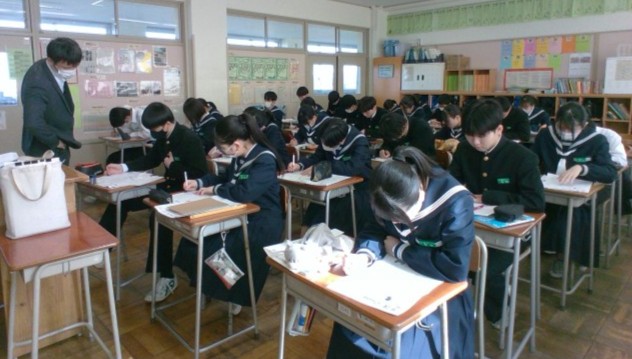 3年生は、私立高校の一般入試を来週に控え、授業によっては学習のまとめプリントを行っています。