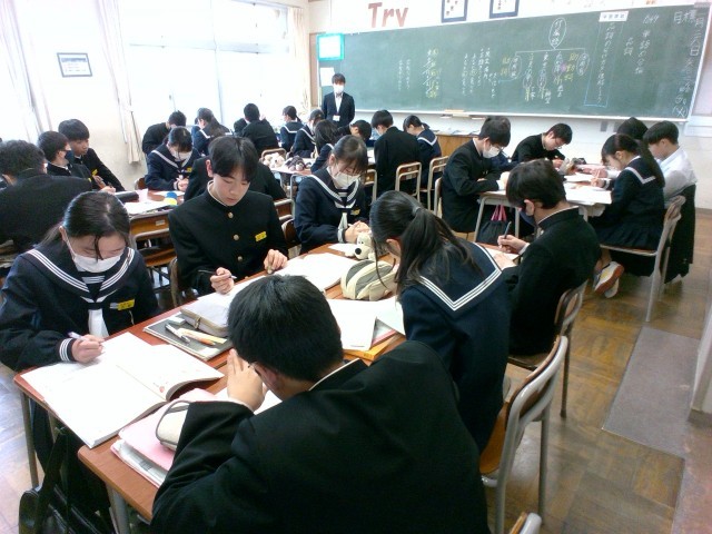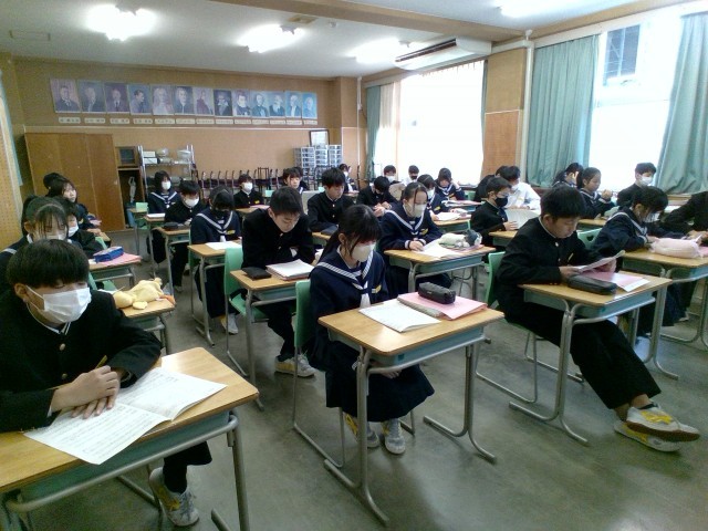 1年・授業風景 公開日 2025/01/28 更新日 2025/01/28 1学年 1月28日(火) 3限1年生は、前向きに授業を受けています。(写真 上:1年2組 音楽「空は今」)(写真 中:1年3組 社会「南アメリカ州」)(写真 下:1年4組 国語「単語の分類」)