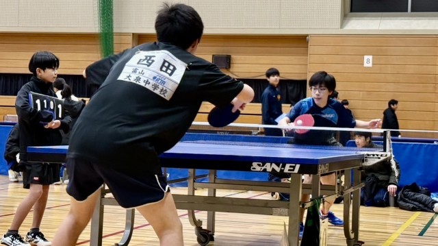 2月1日(土)の部活動・その4 公開日 2025/02/01 更新日 2025/02/01 部活動 2月1日(土) 11:30 男子卓球部は、体育文化センターにて、富山市卓球選手権大会(中学生の部)に6名が出場しました。結果は、3名が2回戦敗退、1名が3回戦敗退となりました。悔しい結果になりましたが、今年度の集大成として全力で戦いました。(写真5枚) +2