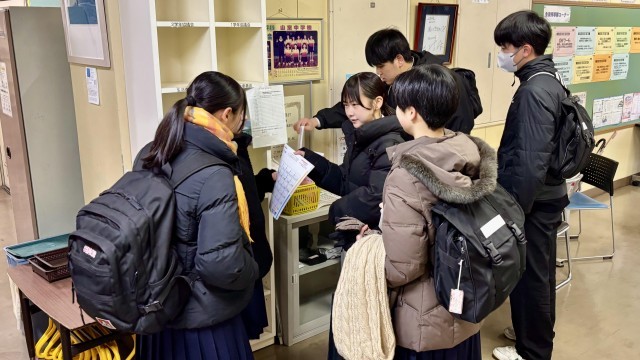3年・理科コツコツ学習 公開日 2025/02/03 更新日 2025/02/03 3学年 2月3日(月) 7:55 今朝も「理科コツコツ学習」のテキストを職員室前に取りに来ました。「理科コツコツ学習」も終盤に入り、今週末7日(金)が最終日になります。