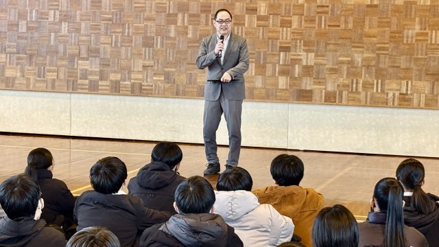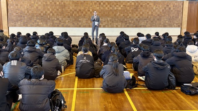 3年生は、終学活後、帰る支度をして、体育館に集まり、「私立校一般入試・直前集会」を行いました。