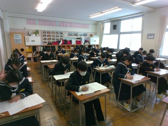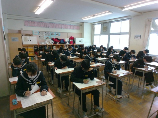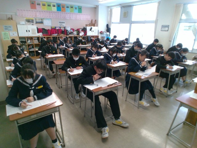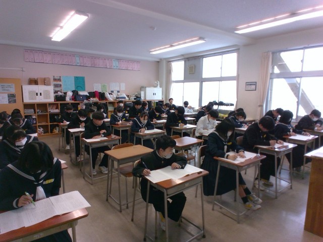 1年・実力テスト 公開日 2025/02/06 更新日 2025/02/06 1学年 2月6日(木) 2限 1年生は、実力テストを行っています。これまでの学習の成果を発揮しようと頑張っています。(写真5枚 上から1年1組から1年5組) +2