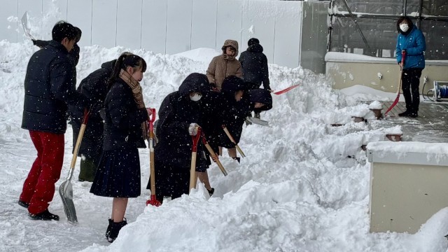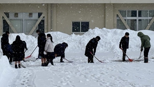 今朝も除雪部隊、大活躍! 公開日 2025/02/06 更新日 2025/02/06 山室中学校のページ 2月6日(木) 7:50 気温は-1度、天気は雪。除雪当番の1年5組とボランティアの生徒が、除雪を始めていました。連日、朝早くから、ありがとう!