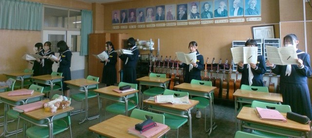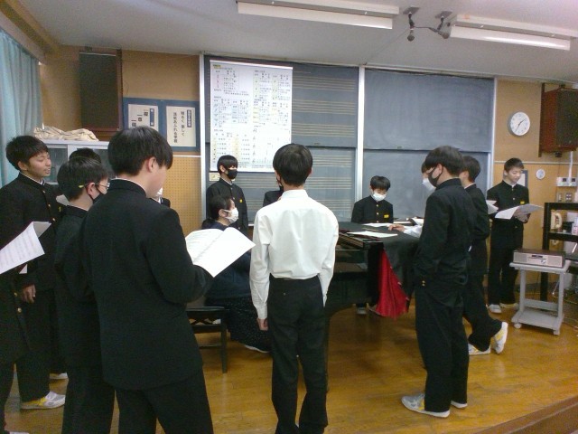 1年・音楽・「空は今」 公開日 2025/02/10 更新日 2025/02/10 1学年 2月10日(月) 5限1年2組の音楽は、卒業式に歌う「空は今」の合唱練習をしています。パート毎に音を確かめ、気持ちを込めて歌えるように頑張っています。