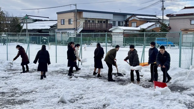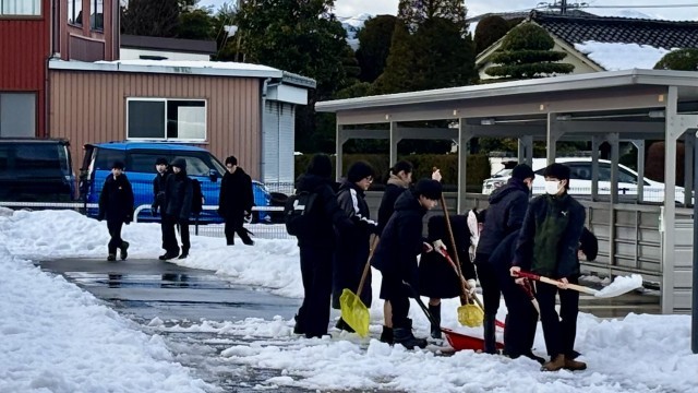 朝の登校風景 公開日 2025/02/14 更新日 2025/02/14 山室中学校のページ 2月14日(金) 8:00 気温は3度、天気は晴れ。降雪はありませんが、除雪当番の2年4組、2年5組とボランティアの生徒が、大きな雪山をどんどんくずしてくれました。