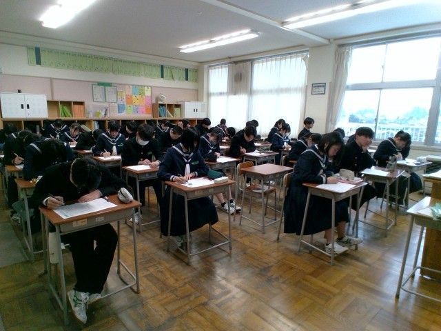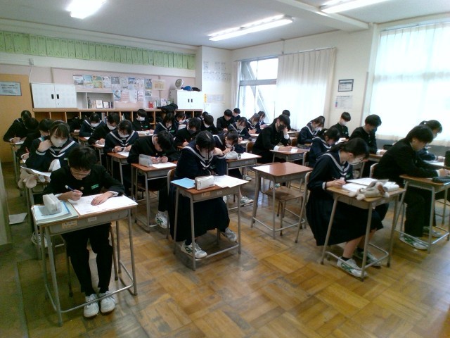 3年・授業風景 公開日 2025/02/17 更新日 2025/02/17 3学年 2月17日(月) 1限3年生の教室では、月曜日の1限より、集中した空気が流れています。どのクラスも問題演習に取り組み、解説を真剣に聞いていました。(写真 上:3年1組 理科「問題演習」)(写真 中:3年3組 数学「問題演習」)(写真 下:3年5組 国語「問題演習」)
