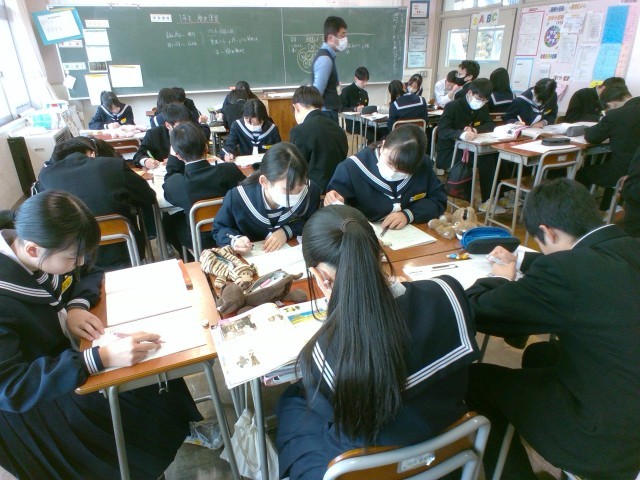 1年・授業風景 公開日 2025/03/03 更新日 2025/03/03 1学年 3月3日(月) 4限3月に入り、1年生もまとめの学習を行っています。2年生への進級に向けて今のうちに力を付けましょう。(写真 上:1年1組 英語「物語を聞いて」)(写真 中:1年3組 数学「代表値」)(写真 下:1年4組 社会「歴史の復習」)