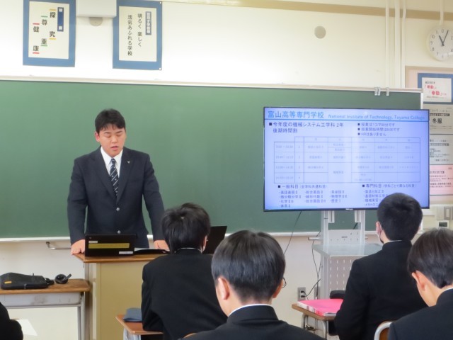 生徒は、中学校とは違う高校の時間割や部活動、特色のある科目の話に興味をもって聞いていました。