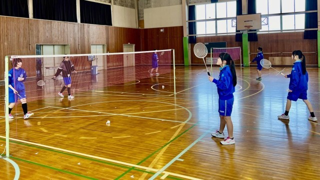 3月8日(土)の部活動・その3 公開日 2025/03/08 更新日 2025/03/08 部活動 3月8日(土) 9:30 女子バドミントン部は、山室中体育館でフットワークの強化に取り組んでいます。3点やダブルスで動く練習をすることで、コート内でスムーズに移動をすることを身に付けています。