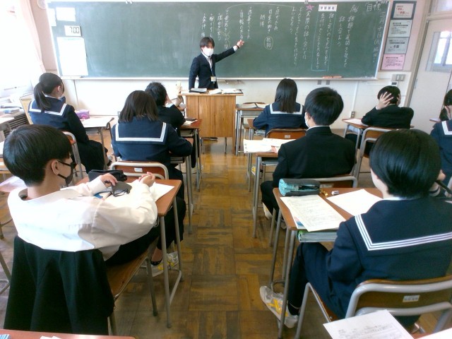 1年・授業風景 公開日 2025/03/10 更新日 2025/03/10 1学年 3月10日(月) 1限 週のスタートの授業、1年生は集中して取り組んでいます。(写真 上:1年1組 理科「化石」)(写真 中:1年3組 国語「話題や展開を捉えて話し合おう」)(写真 下:1年5組 数学「起こりやすさについて」)
