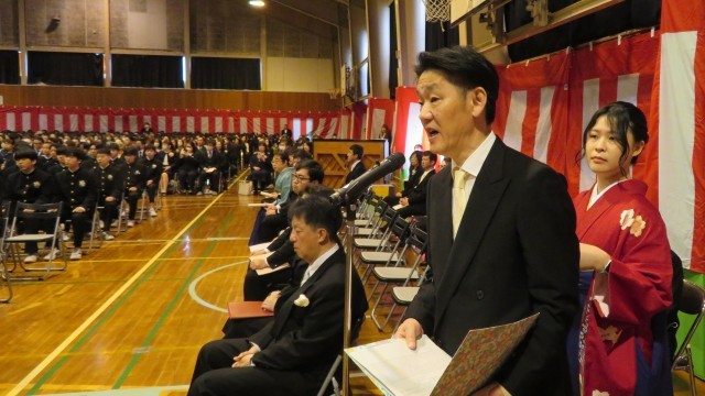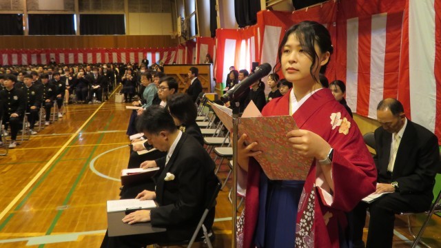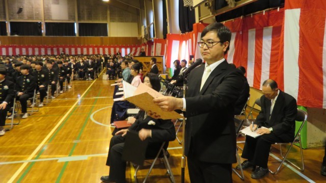 第78回 卒業証書授与式・その4 公開日 2025/03/13 更新日 2025/03/13 山室中学校のページ 3月13日(木) 卒業証書授与 心を込めた担任の呼名に応じて、証書を受け取っています。卒業生を見守る担任の優しい瞳が印象的です。 +4