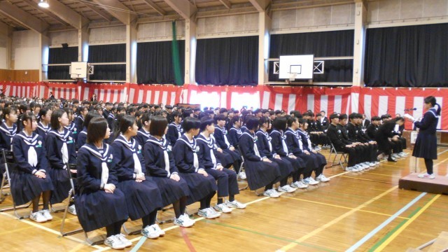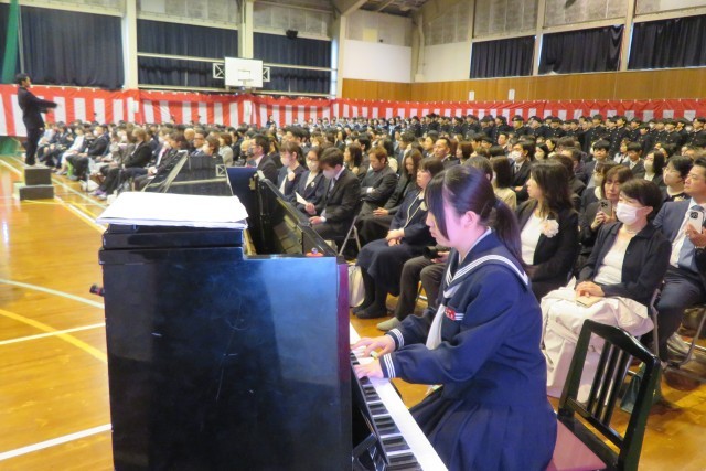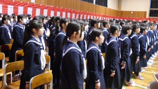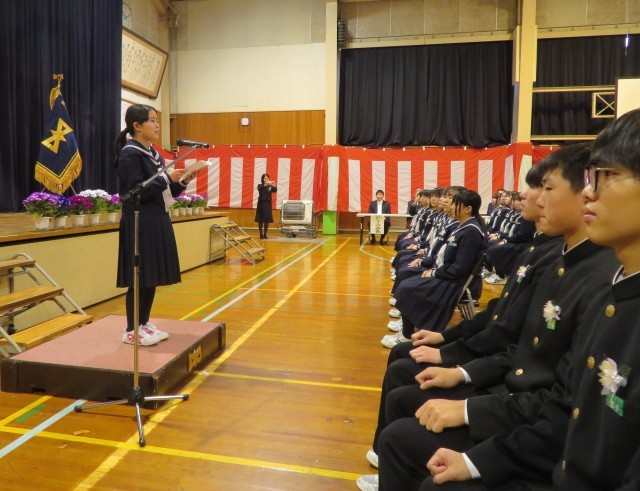 また、「卒業生を送る歌」として、1,2年生全員で「絆」を合唱しました。