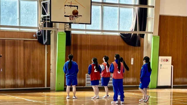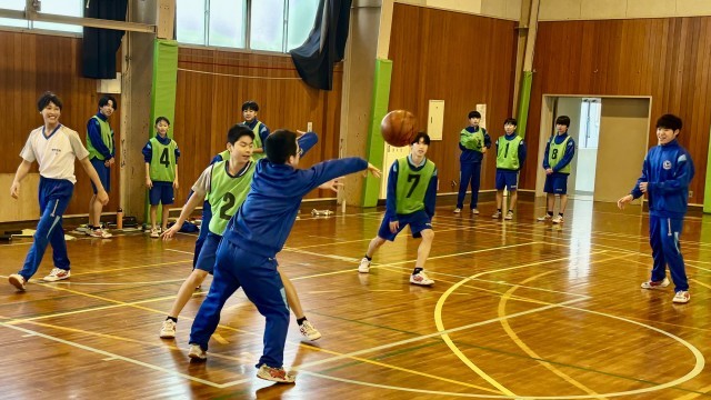 2年・体育・バスケットボール 公開日 2025/03/18 更新日 2025/03/18 2学年 3月18日(火) 2限 2年3組の体育は、バスケットボールをしていした。(写真 上:男子 下:女子)3対3のミニゲーム方式で試合をしています。体育館は若干寒いのですが、生徒は元気いっぱいです!