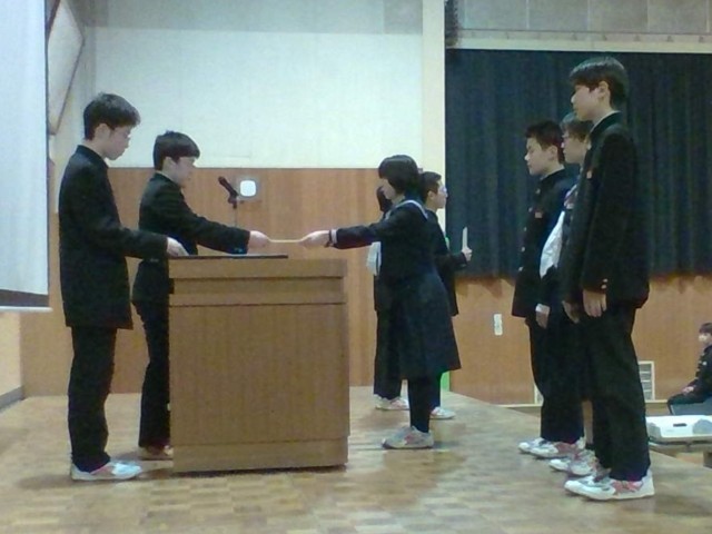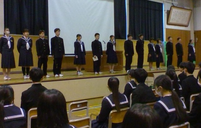 令和7年度前期・生徒会役員任命式 公開日 2025/03/22 更新日 2025/03/22 山室中学校のページ 3月21日(金) 4限 後期生徒会役員の解散式が行われました。(写真:1枚目)その後、令和7年度前期生徒会役員任命式が行われました。(写真:2、3枚目)さらに、新生徒会長より専門委員長が委嘱され、新生徒会長からの挨拶がありました。(写真:4〜7枚目) +4
