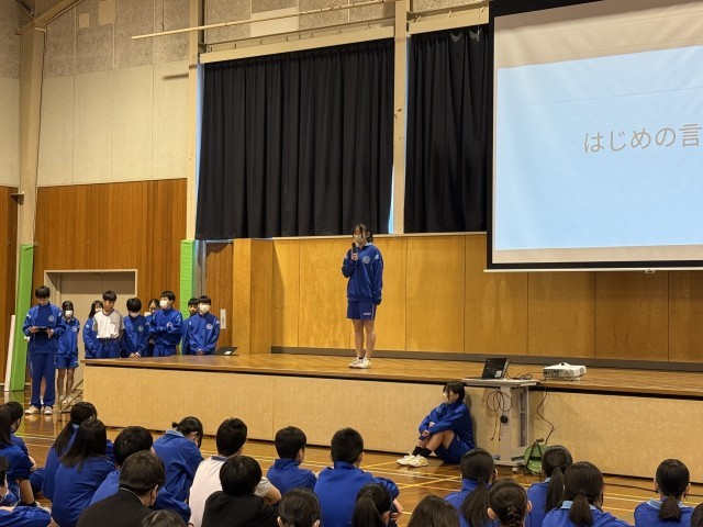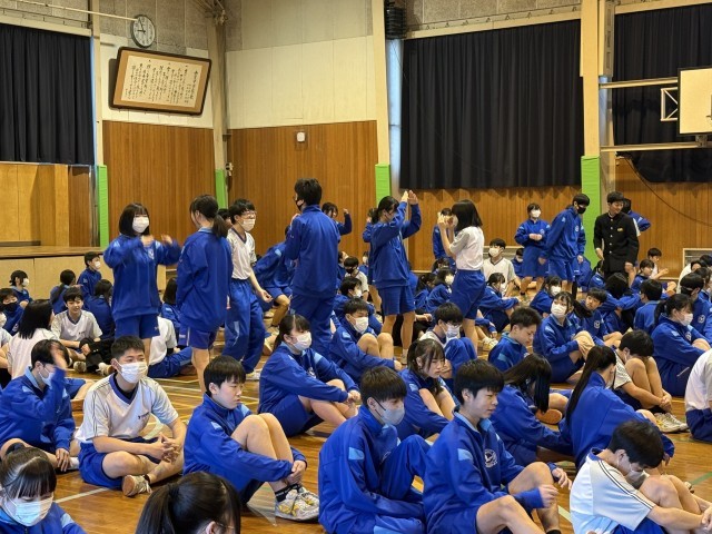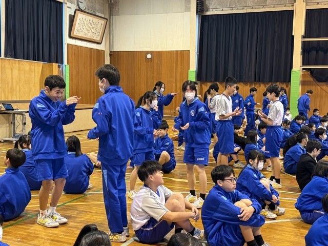 1年・学年レクリエーション 公開日 2025/03/22 更新日 2025/03/22 1学年 3月21日(金) 1,2限1年生は、1年間の締めくくりとして体育館で学年レクリエーションを行いました。学年協議会が運営・進行を務め、「ジェスチャー伝言ゲーム」や「クラス対抗ドッヂボール」で大いに盛り上がりました。笑い声や歓声が体育館に響き、クラスの団結が感じられる楽しい時間となりました。 +3
