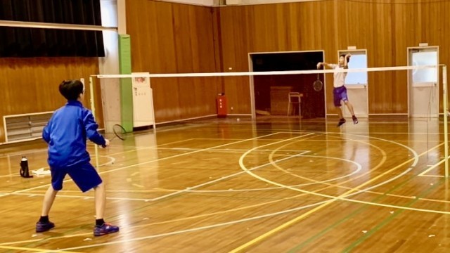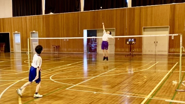 男子バドミントン部は、選手権大会に向けて、部内戦が始まりました。