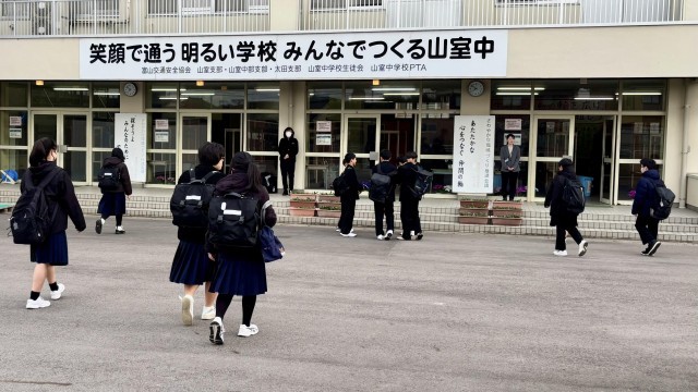 朝の登校風景 公開日 2025/03/24 更新日 2025/03/24 山室中学校のページ 3月24日(月) 7:55 気温は11度、天気はくもり。3学期最終日、「令和6年度 修了式」の朝です。生徒が元気に登校してきました。令和6年度をビシッと締めくくりましょう!