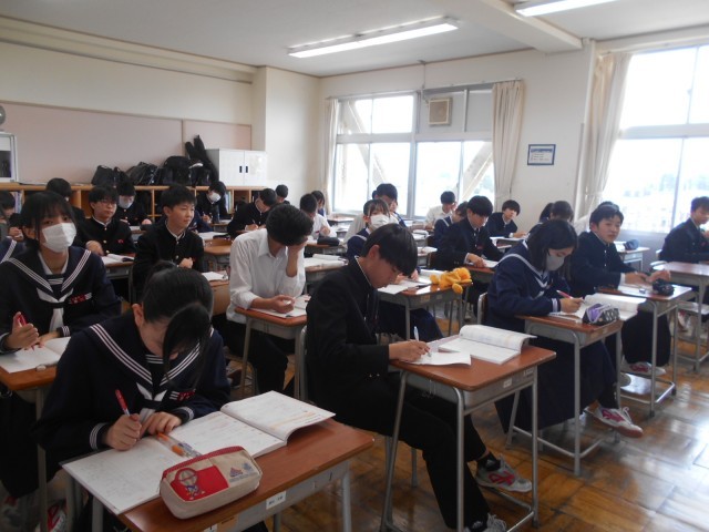 (写真 上:3年2組 英語「Discover a new side of classmates」)