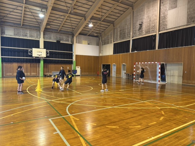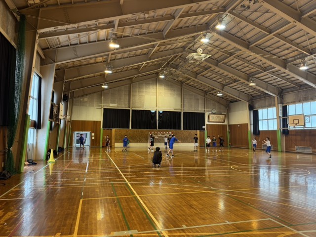 4月20日(日)の部活動・その3 公開日 2025/04/20 更新日 2025/04/20 部活動 4月20日(日) 13:30 男女ハンドボール部は、それぞれ体育館の半面を使って練習に励んでいます。男子は先輩たちが練習に参加してくれています。セットプレーの確認をしています。女子は1対1の練習をしています。