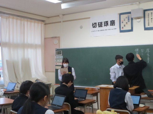 2年・学級討議 公開日 2025/04/24 更新日 2025/04/24 2学年 4月23日(水) 6限 5月2日の生徒総会に向けて、各学級で前期生徒会の活動計画案について話し合いが行われました。生徒会執行部と専門委員会、学年協議会の活動計画案の説明を聞き、積極的に意見が述べられていました。 +2