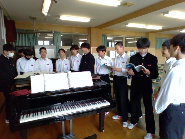 3年・音楽・HEIWAの鐘 公開日 2025/04/28 更新日 2025/04/28 3学年 4月28日(月) 3限 3年5組の音楽の授業では、「HEIWAの鐘」のパート練習をしています。修学旅行の広島にて、山室中学校の歌声を響かせてくる予定です。