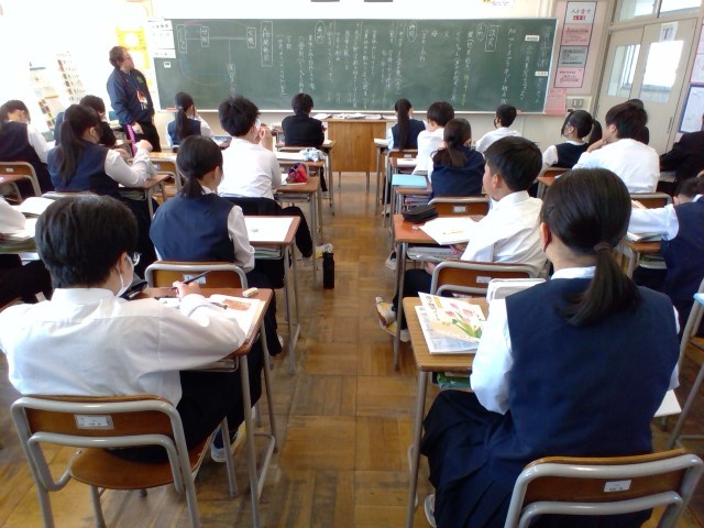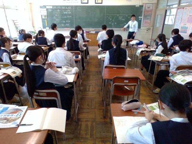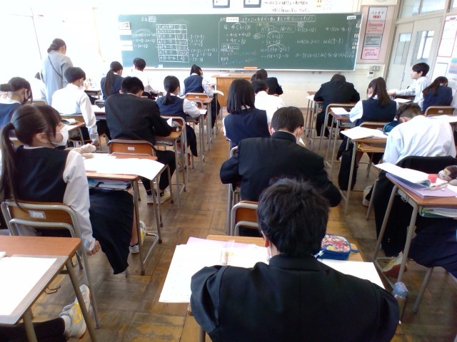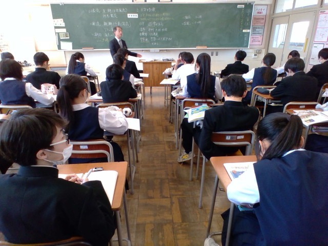 2年・授業風景 公開日 2025/05/01 更新日 2025/05/01 2学年 5月1日(木) 3限 2年生は、全クラス、教室での授業です。5月に入って、ますます頑張っています。(写真 1枚目:2年1組 社会「日本の気候」)(写真 2枚目:2年2組 理科「物質の分類」)(写真 3枚目:2年3組 国語「アイスプラネット」)(写真 4枚め:2年4組 社会「日本の地形」)(写真 5枚目:2年5組 数学「多項式と数の乗除」) +2