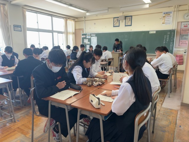 3年・総合 公開日 2025/05/01 更新日 2025/05/01 3学年 5月1日(木) 6限各クラスで修学旅行のしおりの読み合わせを行いました。修学旅行まで2週間を切り、どんどん実感が湧いてきている様子が見られました。(写真上から 3年1組 3年2組 3年3組 3年4組 3年5組) +2