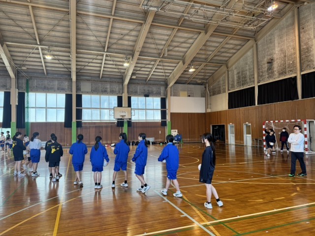 5月4日(日)の部活動・その2 公開日 2025/05/04 更新日 2025/05/04 部活動 5月4日(日) 10:00 ハンドボール部は、体育館で活動しています。自分たちの課題を解決するために何度も繰り返し練習しています。