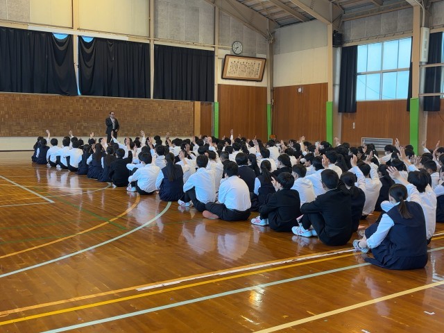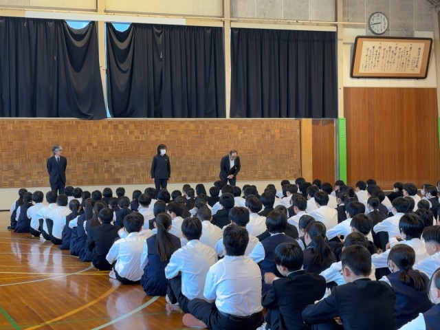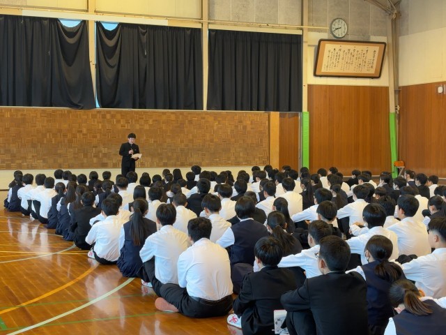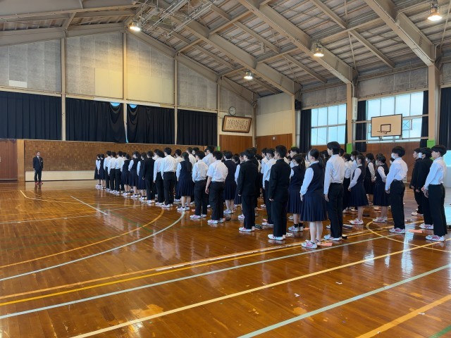 3年・総合 公開日 2025/05/13 更新日 2025/05/13 3学年 5月13日(火) 1限 修学旅行の結団・出発式を行いました。明日は朝の集合時間が早いので、今日はゆっくりと体を休めましょう。写真 1枚目:校長先生からのお話 2枚目:生徒代表の言葉 3枚目:引率の先生の紹介 4枚目:行ってきますの挨拶の様子 +1