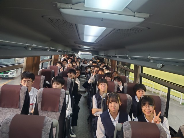 3年・修学旅行・2組バス 公開日 2025/05/14 更新日 2025/05/14 3学年 いよいよ出発!おいしそうに朝ごはんを食べたり、しおりを確認したりと楽しそうです。京都班別学習に向けてしっかりと寝る準備万端の人も!京都班別学習に向けてエネルギーを温存つつ、行ってきます!