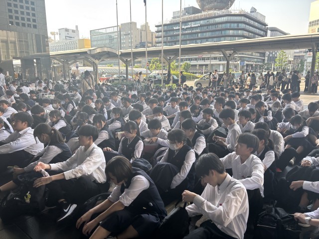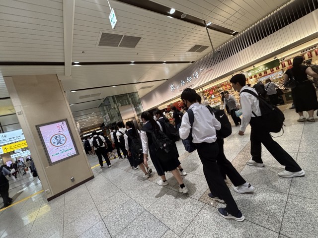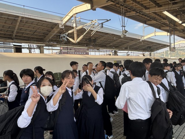 3年・修学旅行・京都駅 公開日 2025/05/14 更新日 2025/05/14 3学年 5月14日(水) 16:15京都班別学習を終え、京都駅に集まりました。気温が高かったこともあり、少し疲れている様子です。今から新幹線に乗り広島へ向かいます。