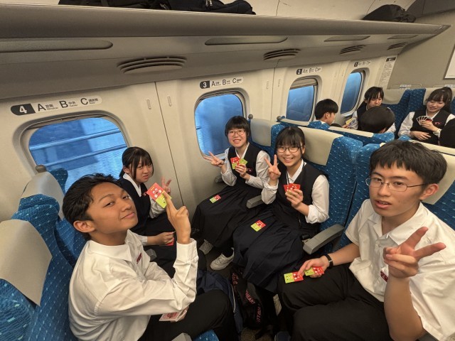3年・修学旅行・新幹線内その2 公開日 2025/05/14 更新日 2025/05/14 3学年 5月14日(水) 17:20新幹線内の様子です。この後は、18:45頃に広島に到着し、みんなでお好み焼きを食べに行きます!