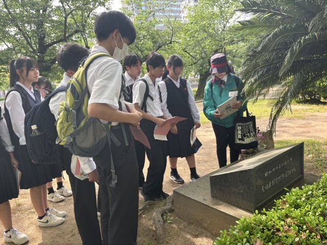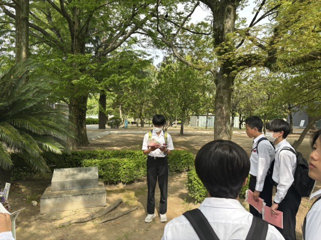 3年・修学旅行・慰霊碑巡りその1 公開日 2025/05/15 更新日 2025/05/15 3学年 セレモニー終了後、平和記念資料館見学と慰霊碑巡りを行いました。事前に慰霊碑について調べたことを発表し、ガイドの方と話しながら、深く学ぶことができました。 +6