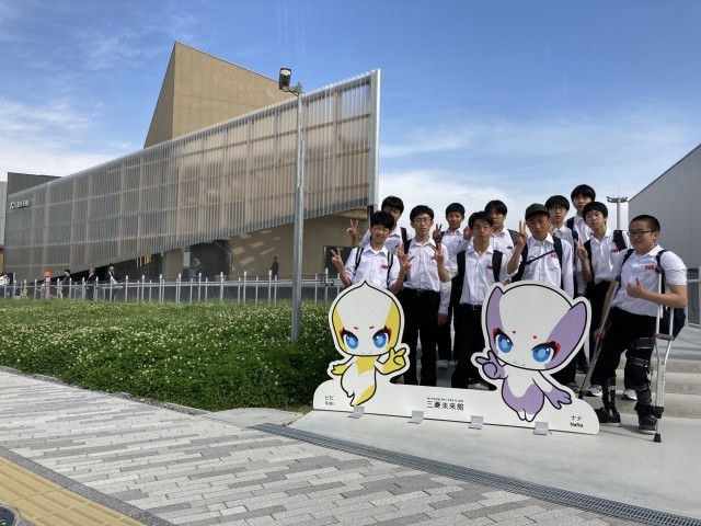 日本の会社のパビリオン内で、「三菱未来館」で生命について試聴体験しました。生命の誕生から未来までをまとめた最新の映像技術に生徒は関心を持ってみています。