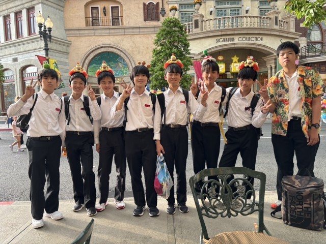 それぞれUSJで買ったグッズに身を包み、楽しんでます!
