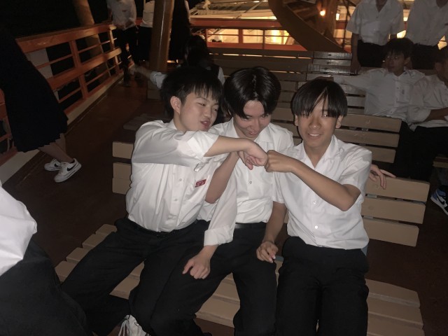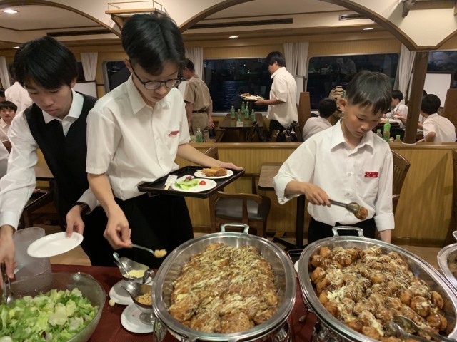 ディナークルーズ、景色を楽しむ人、とことん食べる人、思い思いに満喫中!