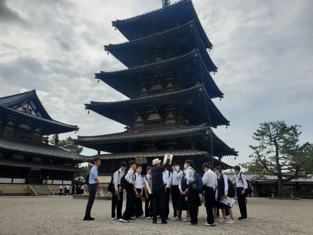 3年・修学旅行・3組法隆寺 公開日 2025/05/16 更新日 2025/05/16 3学年 鐘の音がゴーンと響いています。歴史ある建物や仏像から飛鳥時代、奈良時代を感じています。たくさんの国宝も見ることができました。中には春(5/18まで)と、秋にしか見られないものも。ラッキーです! +1