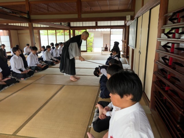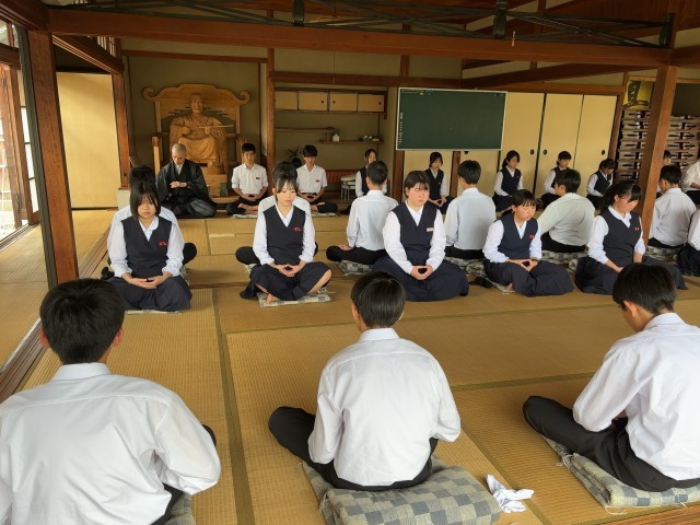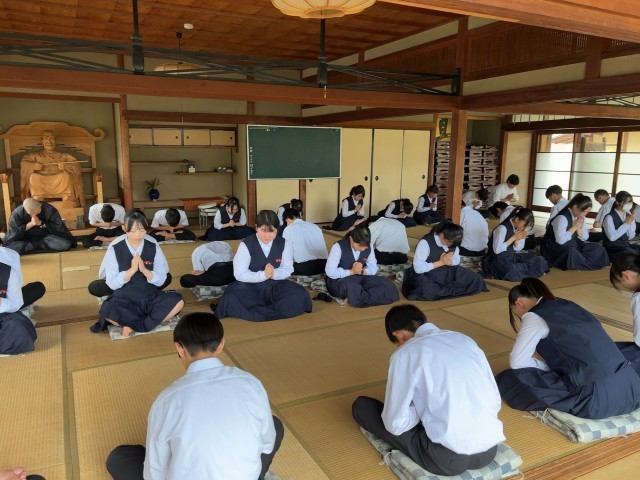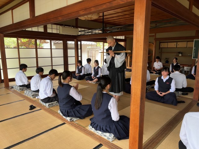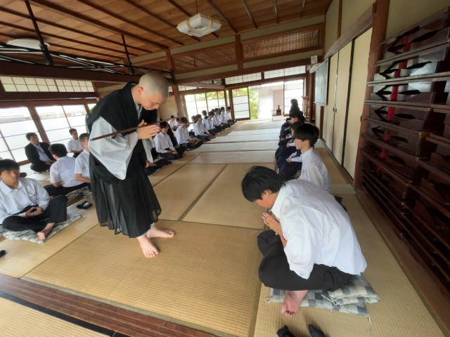 3年・修学旅行・5組座禅体験その2 公開日 2025/05/16 更新日 2025/05/16 3学年 5月16日(金)実際の座禅の様子です。約25分間、正しい姿勢で座り、時には手を合わせ和尚さんに背中を叩かれていました。とても貴重な体験をすることが出来ました。この後は嵐山に向かい、みんなでお昼ご飯を食べます。 +3