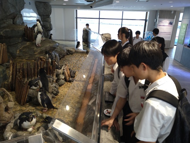 クラス別での海遊館は何階にも渡る大きな水槽や様々な生き物の生態を目を輝かせて見ました。