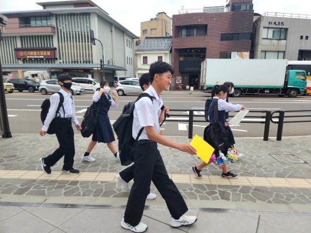 2年・金沢校外学習・スタート 公開日 2025/05/20 更新日 2025/05/20 2学年 5月20日(火) 10:00 班別学習がスタートしました。スマートフォンでマップを確認し、歩き始めました。