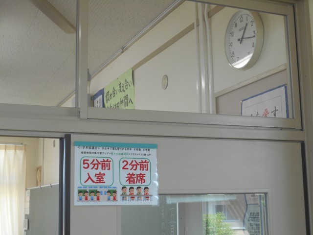 入学して1か月が経ちました 公開日 2025/05/22 更新日 2025/05/21 1学年 1学年では、「山中愛」を環境を整えることで表現しています。廊下は生徒の手によって、とても綺麗に保たれています。また、雑巾ラックもそれぞれがきちんとすることに合わせて、係の仕事としても実践しているため、入学当初と変わらず整然と並べられています。1学年協議会では、廊下の混雑緩和や授業の開始からよいスタートを切るために、「5分前入室、2分前着席」に基準を高めて実践し始めました。