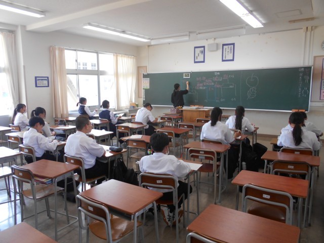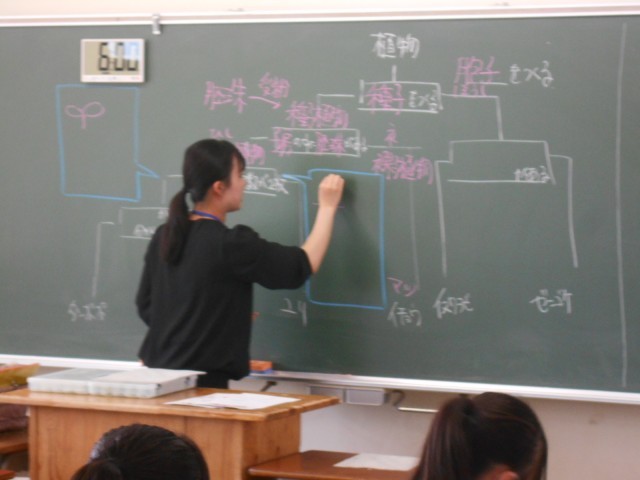理科では、植物の分類を生徒に答えてもらいながら、一つ一つ確認していました。