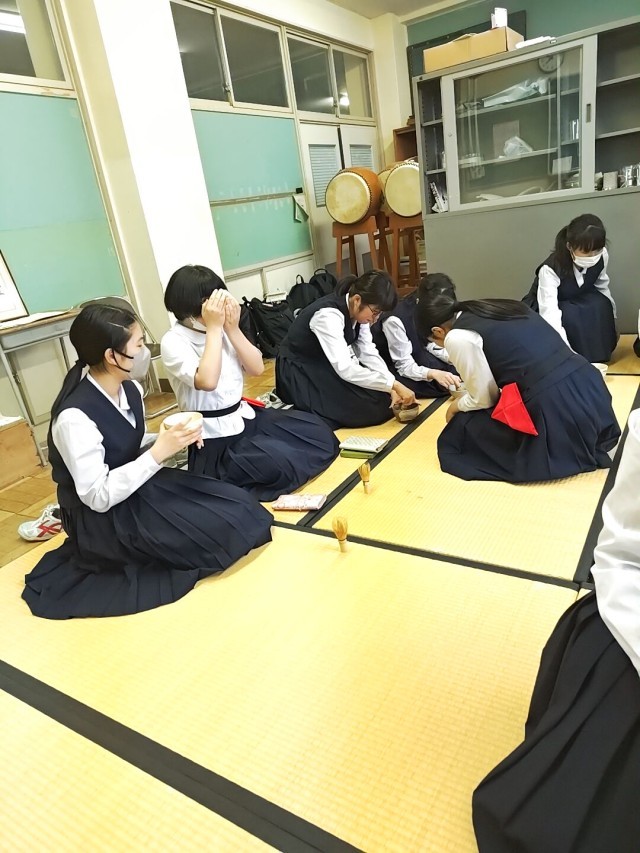 5月22日(木)の部活動 公開日 2025/05/22 更新日 2025/05/22 部活動 5月22日(木) 16:30 茶道部の活動の様子です。上級生が下級生にお茶の点て方を指導してます。1年生も見て学んでいます。