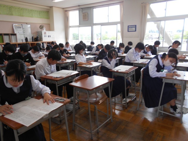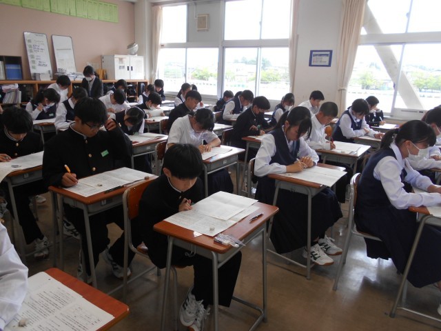 1年・国語・中間考査 公開日 2025/05/26 更新日 2025/05/26 1学年 5月26日(月) 3限 1年生、初めての定期考査です。慣れない雰囲気の中ですが、とても集中して頑張っています。 (写真 1枚目:1年1組)(写真 2枚目:1年2組)(写真 3枚目:1年3組)(写真 4枚目:1年4組)(写真 5枚目:1年5組) +2