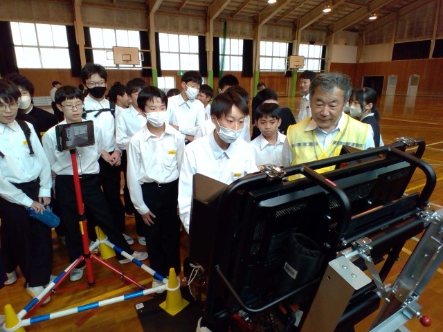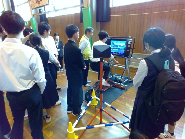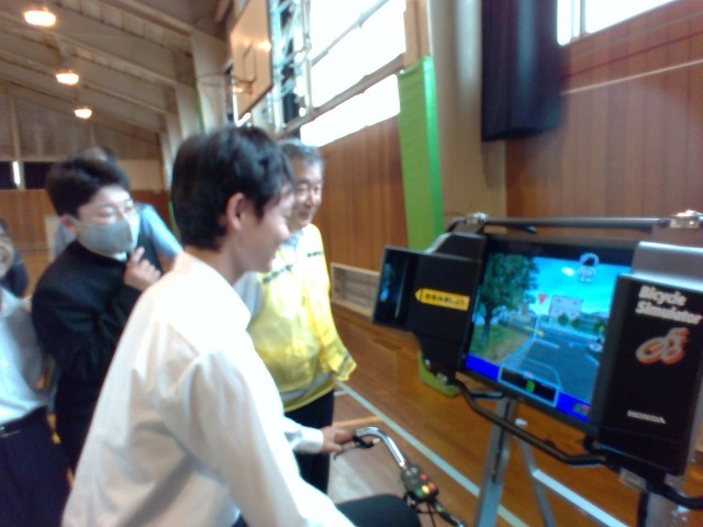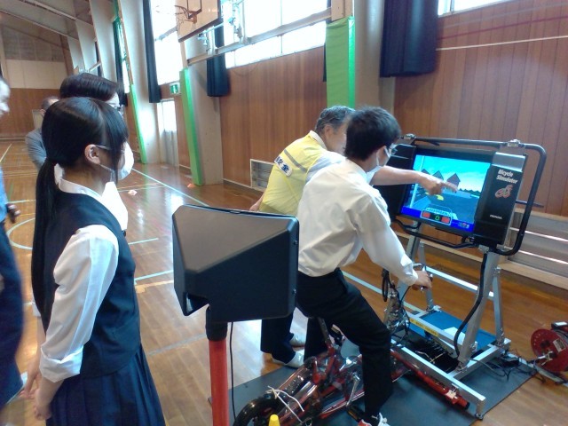 自転車シミュレーター 公開日 2025/05/27 更新日 2025/05/27 山室中学校のページ 5月26日(月) 15:10 富山県警察南署と交通安全協会の方々に来校いただき「自転車シミュレーター」を使って、自転車の安全な走行の仕方を体験しています。サイクル安全リーダー等、体験した生徒は、来年4月から始まる自転車反則金制度を学ぶよい機会となりました。 +2