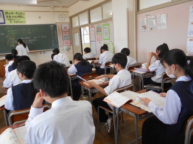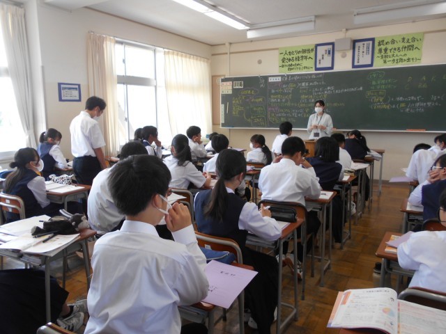 1年・家庭科・私たちの食生活 公開日 2025/05/29 更新日 2025/05/29 1学年 5月29日(木) 3限 1年5組の家庭科の授業です。たんぱく質や炭水化物など、私たちの食生活に欠かせない栄養素のはたらきについて学んでいます。