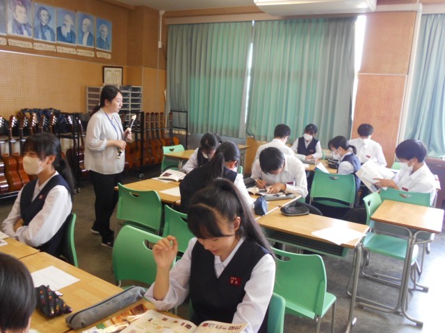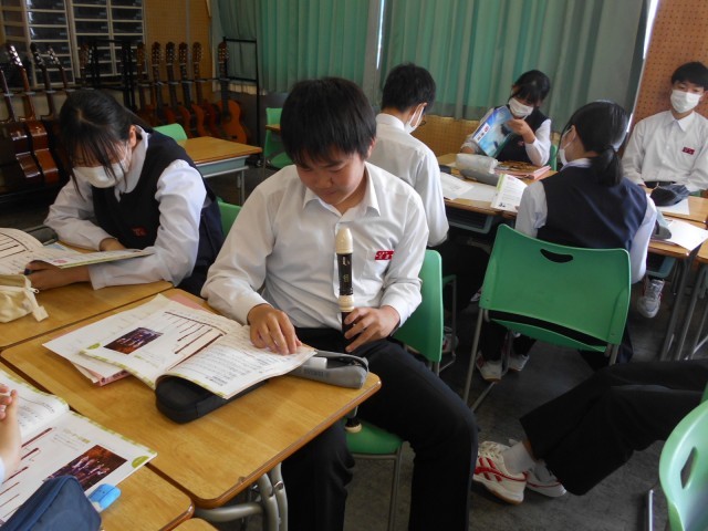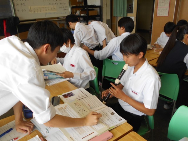 3年・音楽・ふるさと 公開日 2025/06/02 更新日 2025/06/02 3学年 6月2日(月) 2限 3年1組の音楽の授業です。アルトリコーダーを使い、唱歌「ふるさと」を演奏しています。ソプラノリコーダーとの違いに気をつけながら、押さえ方を練習していました。