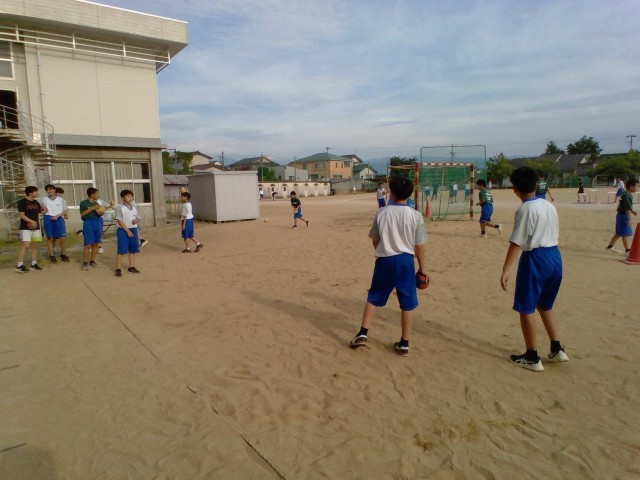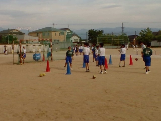 6月6日(金)の部活動・その3 公開日 2025/06/06 更新日 2025/06/06 部活動 6月6日(金) 16:40 男女ハンドボール部は、グラウンドで活動しています。声を掛け合いながら、フォーメーションの練習をしていました。