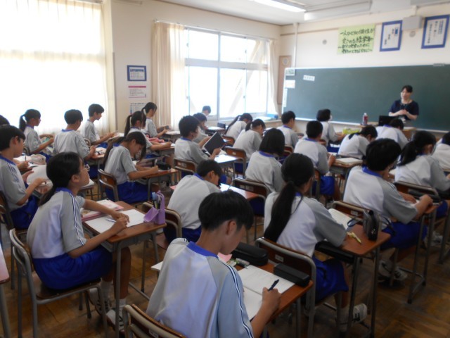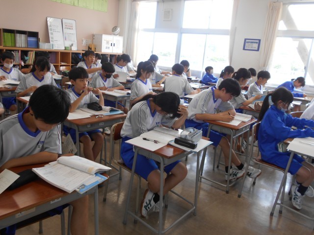 1年・授業風景 公開日 2025/06/09 更新日 2025/06/09 1学年 6月9日(月) 3限 1年生の授業の様子です。気温が上がり、暑くなってきましたが、集中して学んでいます。 (写真 上:1年2組 数学「四則の混じった計算」)(写真 中:1年3組 国語「空の詩三編」)(写真 下:1年4組 英語(少人数)「知らないものや人についてたずねよう」)