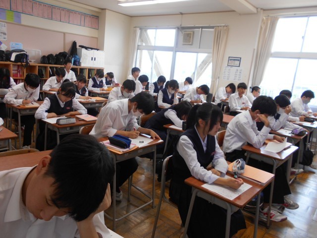 3年・国語・条件作文 公開日 2025/06/10 更新日 2025/06/10 3学年 6月10日(火) 2限 3年4組の国語の授業です。・「己の欲せざる所は人に施すなかれ。(自分がしてほしくないことは、人にしてはいけない。)・「過ちて改めざる、是を過ちと謂う。(失敗したあと、反省して改めないことが本当の過ちだ。)」孔子「論語」の一節から好きなものを選び、自分の考えを作文にまとめます。高校入試と同じ形式で作文し、誤字・脱字や原稿用紙の使い方にも気を付けて取り組んでいます。